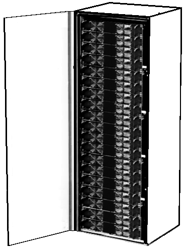 Once again, Cabinets and Racks may be further combined in serie and/or in parallel and then disposed into a container. The base element is either the Cabinets or the rack.