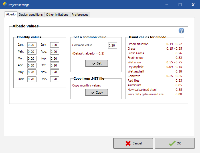 This dialog also defines the maximum search area for meteo files, in the vicinity of the project site. The default value is 10km, but it can be changed up to 9999km.