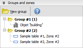 Click on [New group] to create a group, specify its name and then select the objects you want to include in it via the windows which pops up. By default, objects currently selected in the scene will be be selected in this window.